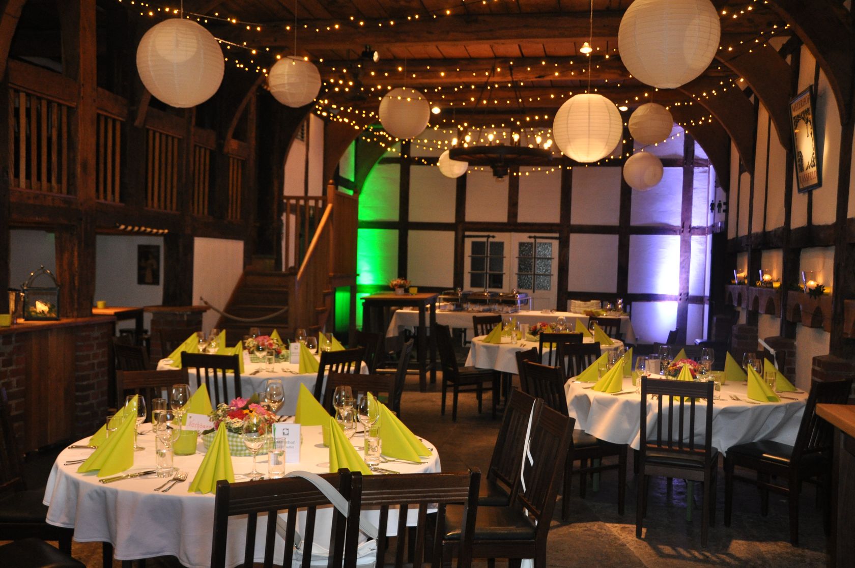 Feiern, Tagen und Genießen auf unserer historischen Deele. Unsere Räumlichkeiten sind je nach Anlass für 30 - über 120 Personen geeignet. Gerne stehen wir Ihnen für ein erstes Gespräch zur Verfügung, in dem wir Ihnen verschiedene Möglichkeiten vorstellen möchten. Aus diesem Grund bitten wir Sie uns Ihre Buchungsanfrage zu schicken. Auf dem Kalender werden Ihnen die noch nicht fest gebuchten Termine dargestellt. Gegebenenfalls liegen bereits Reservierungen für einen als FREI ausgewiesenen Termin vor.